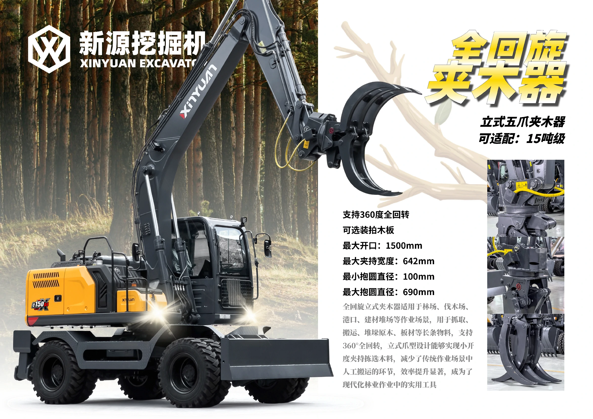 15吨级全回旋立式五爪夹